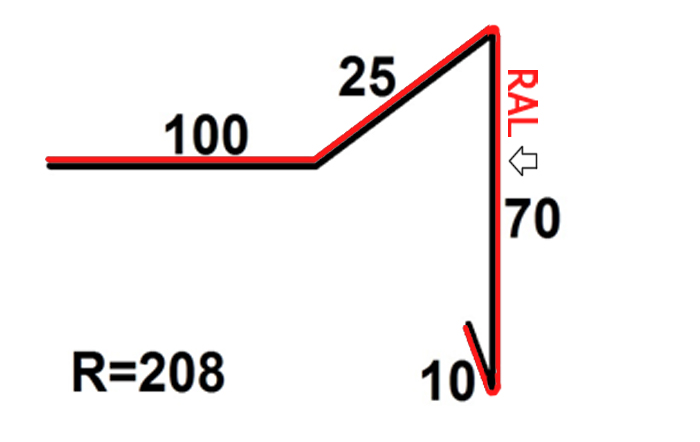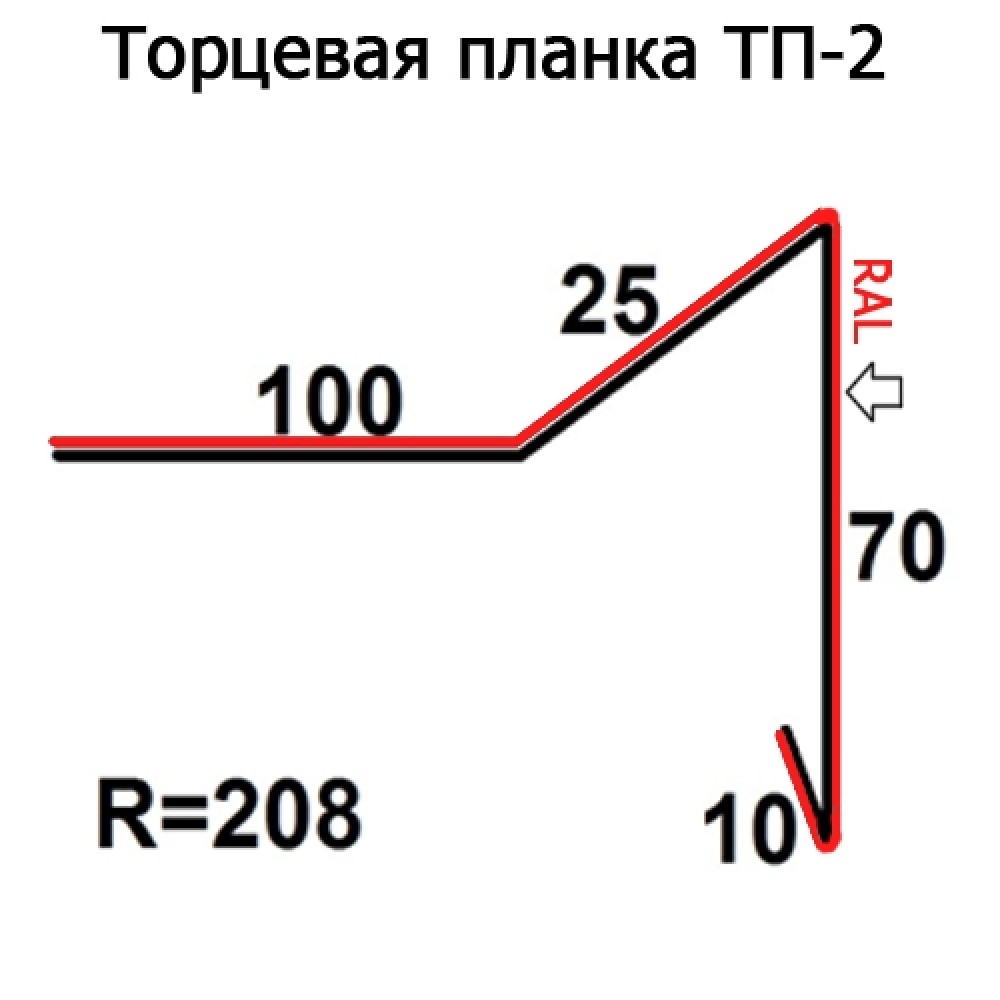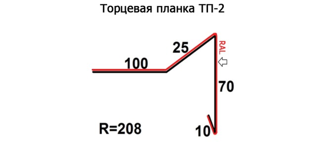 Торцевая планка ТП-2 R=208,  длина 2м, покрытие - полиэстер, толщина металла 0,45мм