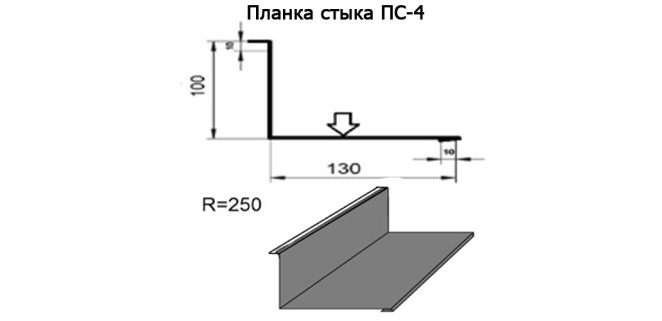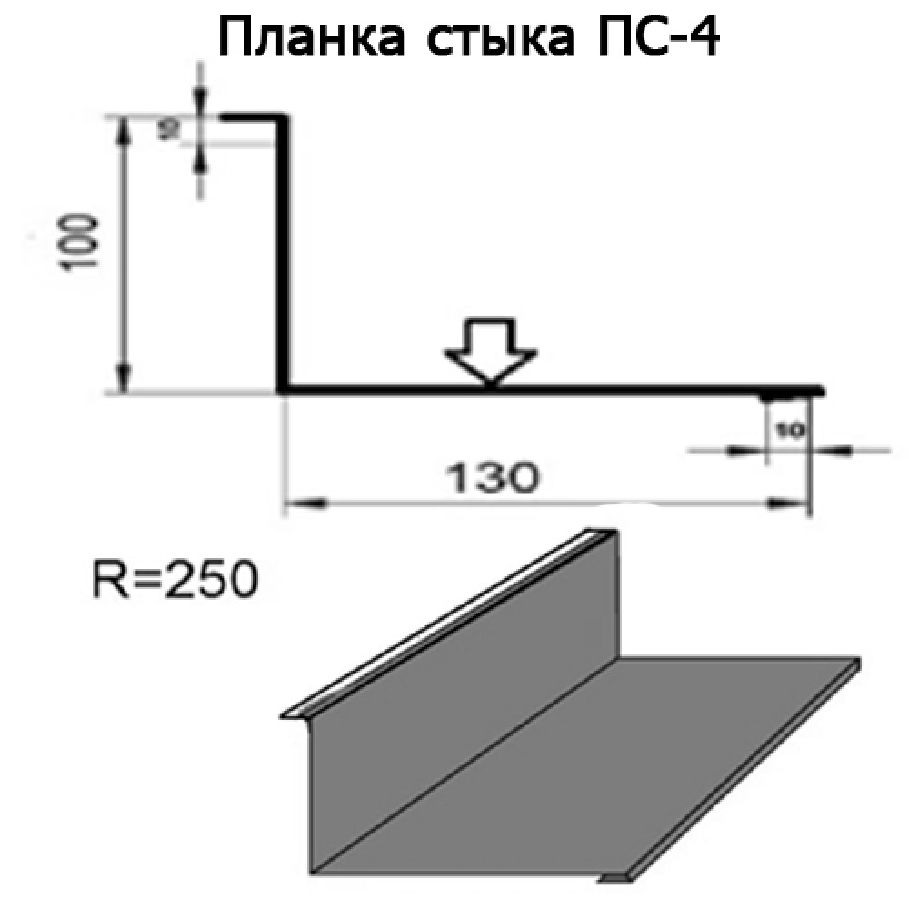 Планка стыка ПС-4 R=250, длина 2м, металл – цинк, 0,45мм
