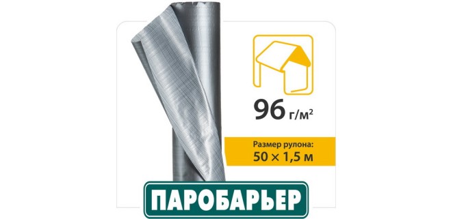 Паробарьер™ Н96СИ – пароизоляционная пленка, которая предназначена для образования дополнительного защитного слоя с внутренней стороны теплоизоляции в скатных крышах, а также в случаях внутреннего утепления стен. Рекомендуемая область применения пароизоляции – нежилые и вспомогательные здания с невысокими влажностными и температурными нагрузками внутри помещений (гаражи, хозяйственные здания, летние кухни, беседки). Защищает теплоизоляцию с внутренней стороны от проникновения влаги. Применяется, как пароизоляционный слой при утеплении стен, потолков и крыш.
