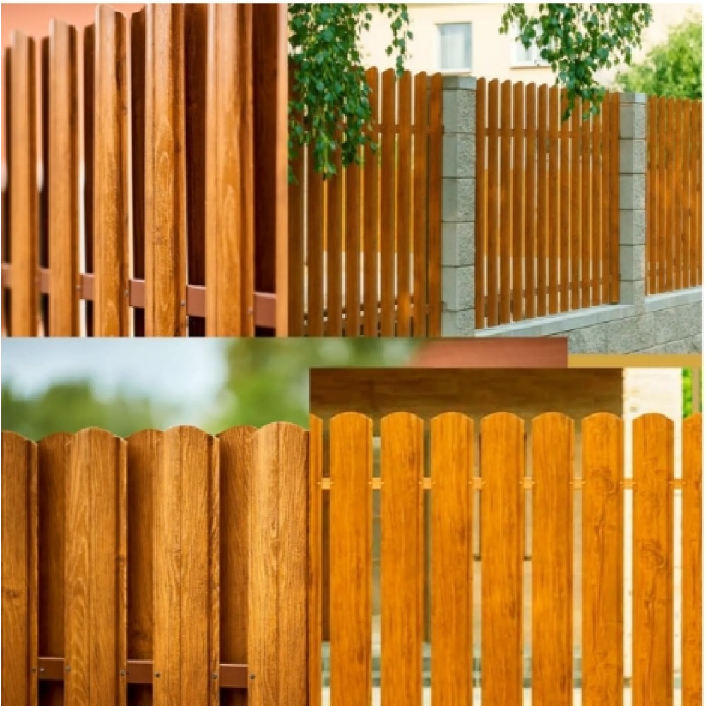 Хочете створити красивий і довговічний паркан без складного догляду? Металевий штахетник напівкруглий двосторонній під дерево – це ідеальне рішення! Він поєднує в собі естетику натурального дерева та міцність оцинкованої сталі. Такий євроштахетник виглядає стильно й гармонійно, а його двостороннє покриття гарантує однаково привабливий вигляд з обох сторін.