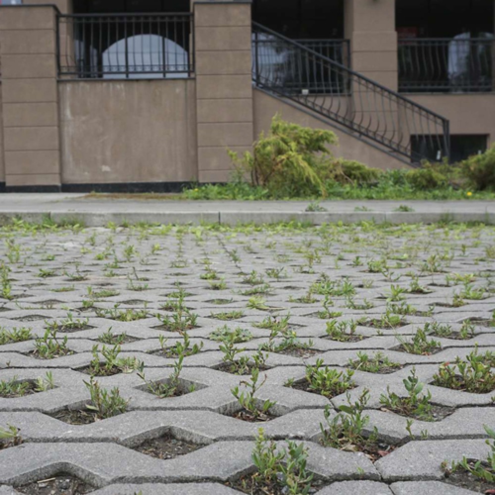 Тротуарна плитка Решітка, товщиною 8 см, чудово підходить для укладання під'їзних доріг для автомобілів, паркувань, заправок, складів і т.д. Ця плитка дозволить підтримувати територію в чистоті та порядку, зберігши при цьому рослинність.