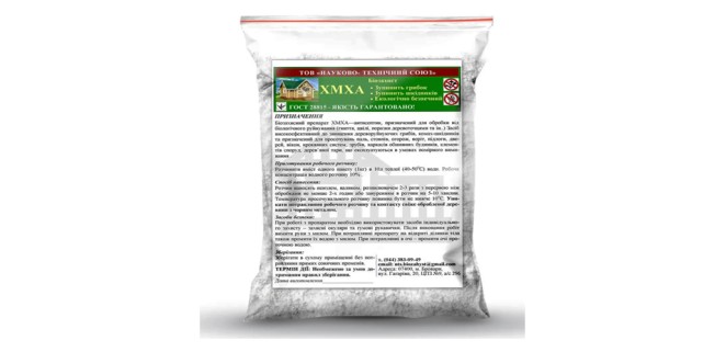 АЛАНА ХМХА - кристалічний сухий концентрований антисептик Знищує деревогризучих жуків та їх личинок на всіх стадіях розвитку. Запобігає повторному зараженню. Захищає деревину від гниття – профілактика появи жуків на заготовленій деревині. У разі VIII-XI класів служби (за ГОСТ 20022.2-80).