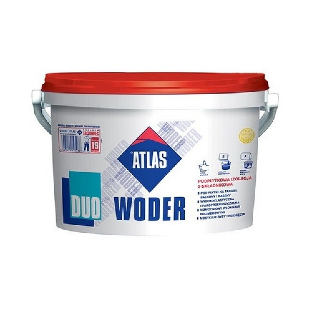 ATLAS WODER DUO виробляється у вигляді двокомпонентного гідроізоляційного продукту на основі цементу, мінеральних заповнювачів і модифікуючих добавок (суха суміш компонент A), а також водної дисперсії штучних речовин (емульсія компонент) B).