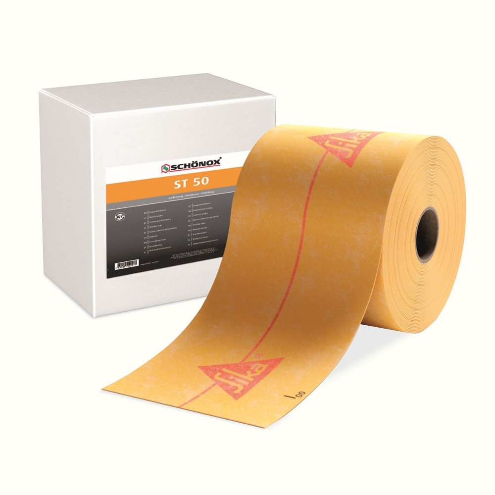 SCHÖNOX ST50 – це еластична двостороння спеціальна стрічка для ущільнення, покрита флісом. Для поєднання із гідроізоляційними матеріалами Sika.