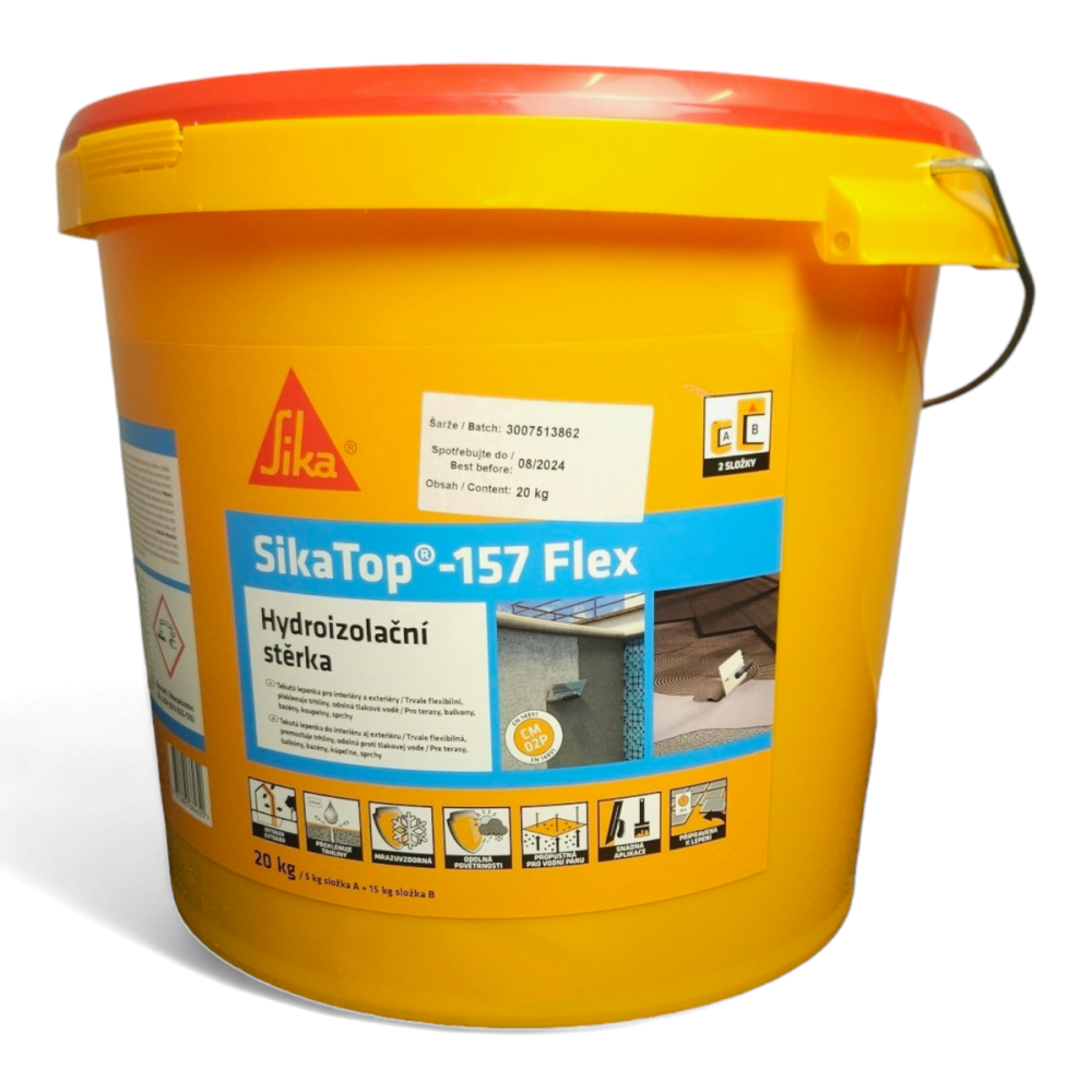 SikaTop-157 Flex – це гідроізоляційний полімермодифікований цементний розчин, що складається з двох компонентів, еластичний, що перекриває тріщини, армований волокнами, який можна застосовувати на багатьох типах будівельних основ.