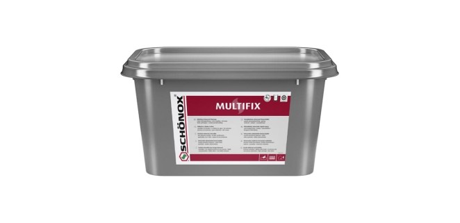 SCHÖNOX® MULTIFIX це акриловий клей і засіб для фіксації, для багаторазового кріплення і фіксації текстильних покриттів для підлоги, CV покриттів та SL плитки на всіх водостійких основах у внутрішніх приміщеннях.