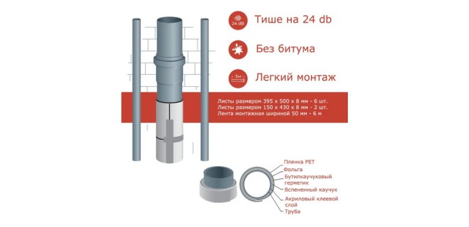 Комплект для шумоізоляції стояків каналізації NSP SOFT PRO Нормаізол