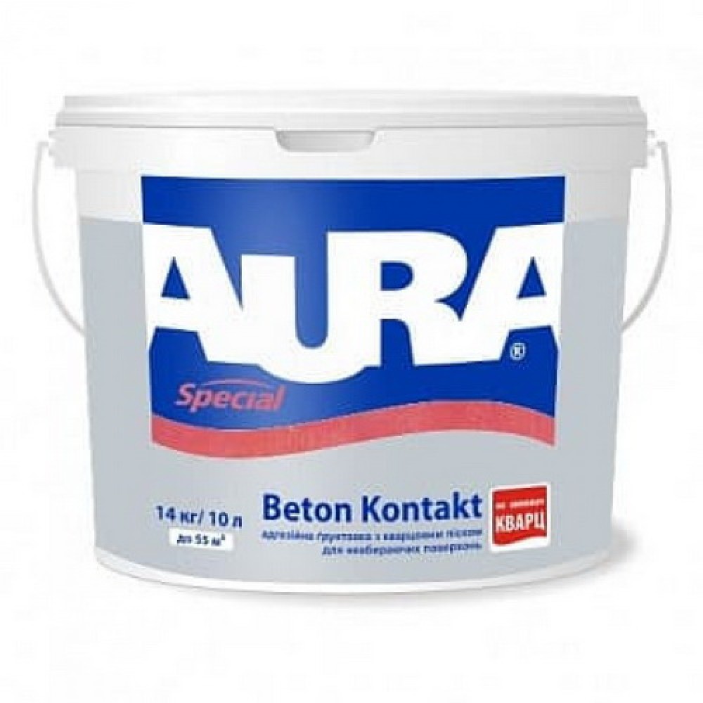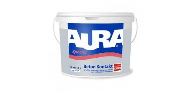 AURA Beton Kontakt - готовая к применению адгезионная грунтовка с кварцевым песком для невпитывающих поверхностей (монолитные бетонные поверхности, керамическая плитка, гипсокартон, поверхности, окрашенные масляными и алкидными красками и др). Для внутренних и наружных работ. Не подлежит тонировке.