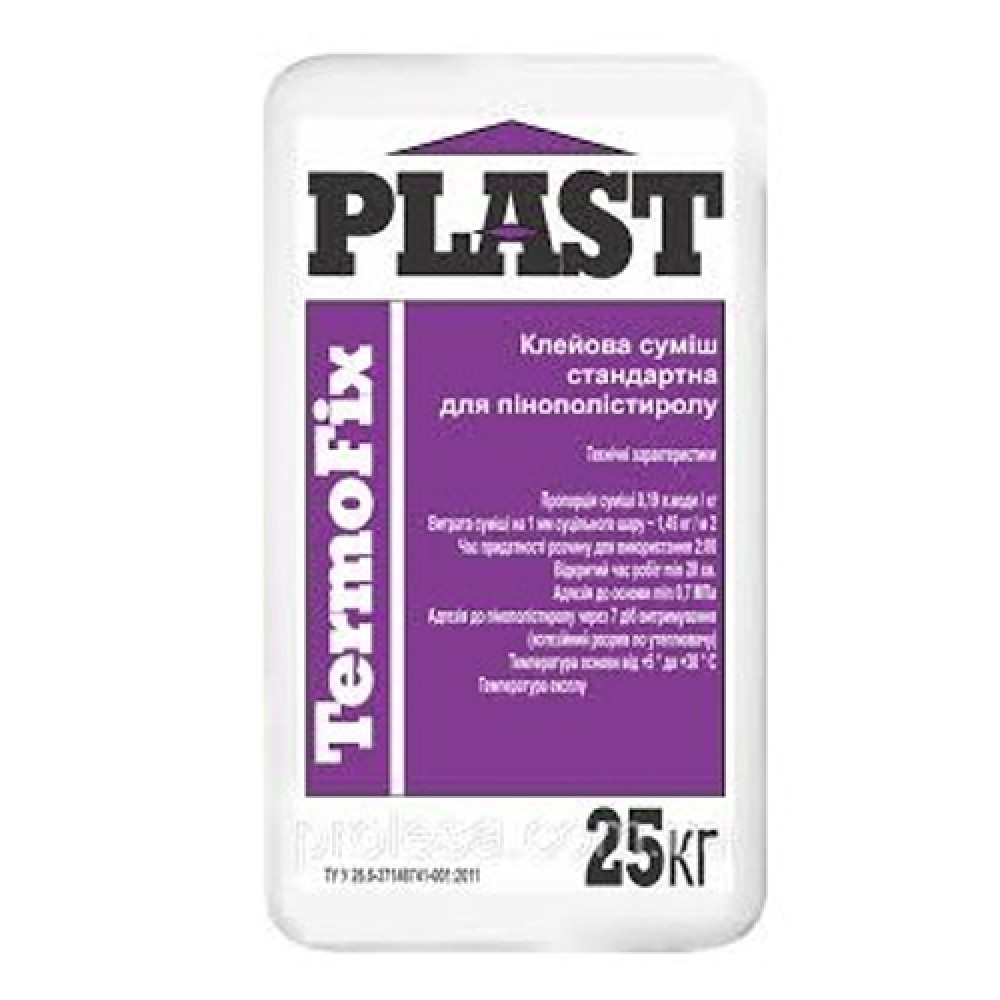 Клей PLAST Thermo-Fix (Пласт термофікс) - клей для пінополістирольних плит, що використовується при виконанні утеплення фасдів будівель.