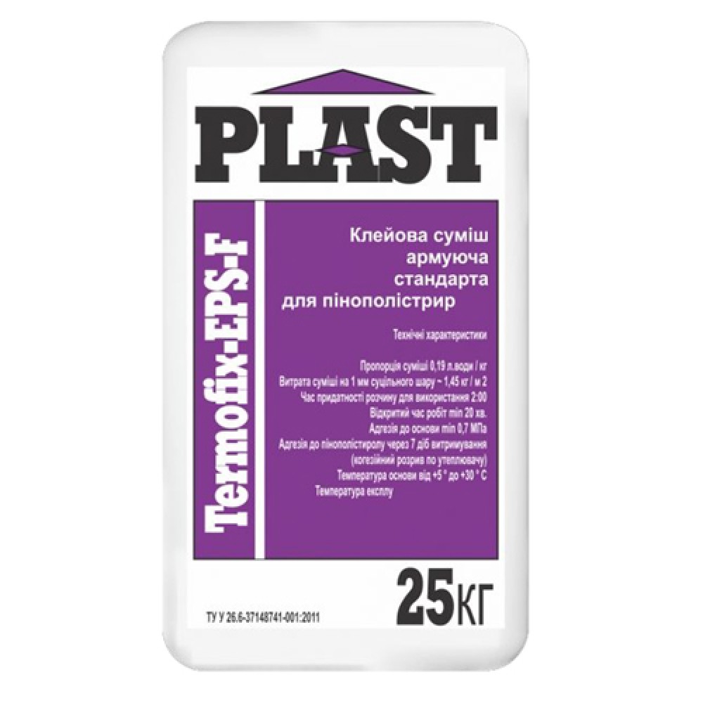 PLAST TermoFix-EPS-F – універсальна суміш для приклеювання та армування теплоізоляційних плит в системах теплоізоляції, 25 кг