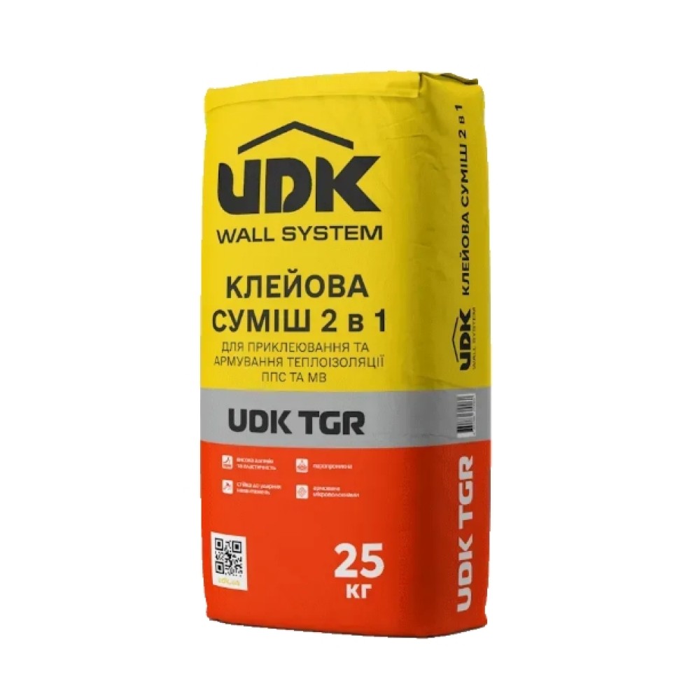 Клейова суміш 2 в 1 для приклеювання та армування теплоізоляції ППС та МВ — UDK TGR, 25 кг
