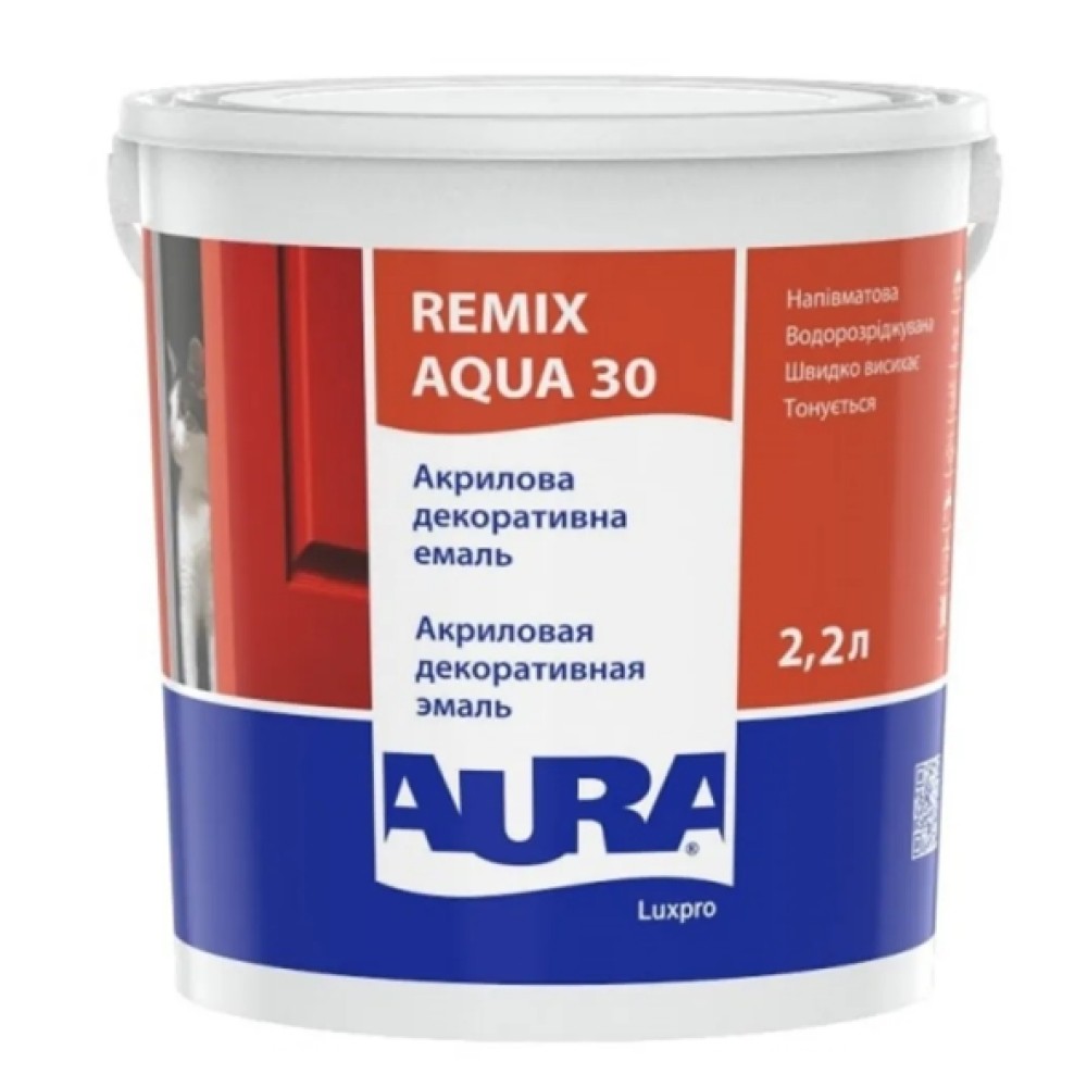 Інтернет-магазин будматеріалів БудБаза Абсолют Харків пропонує купити акрилову емаль Aura Luxpro Remix Aqua 30 напівматову за низькою ціною.