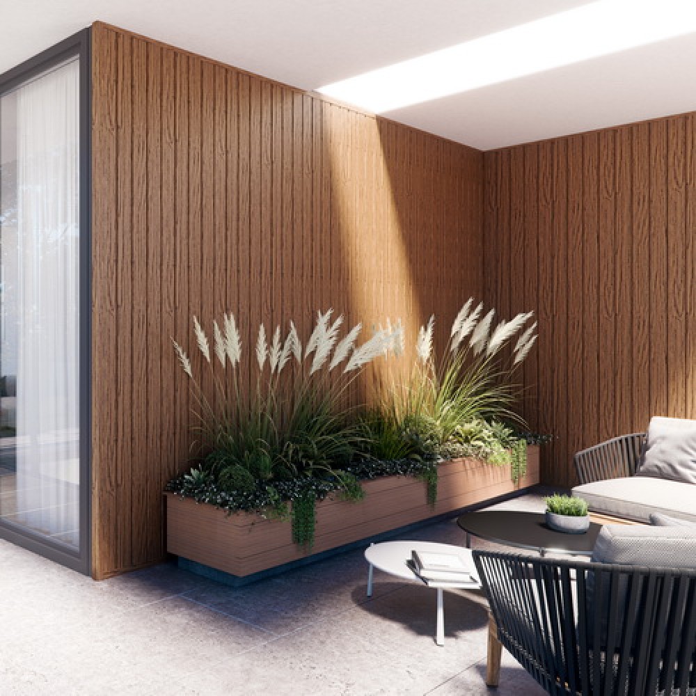 • рифления на структуре имитируют древесину и одновременно позволяют свободно стекать воде, уменьшая накопление пыли на поверхности фасада