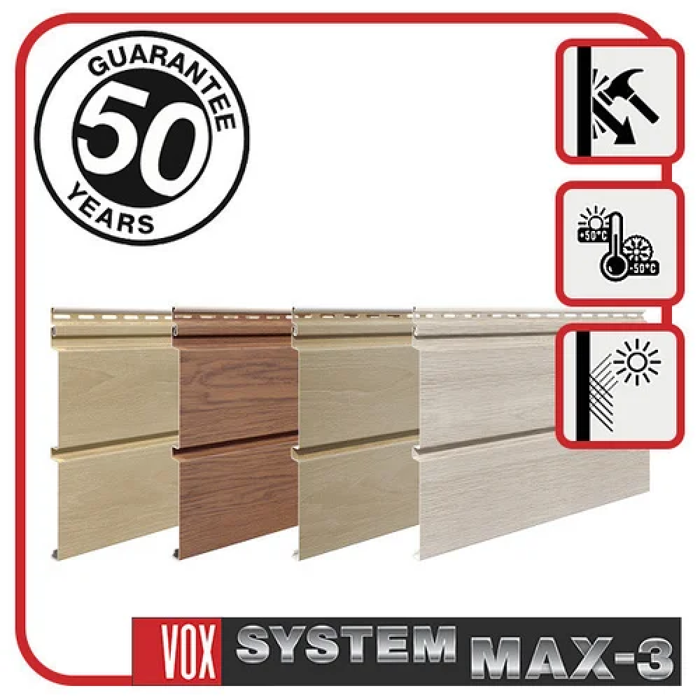 System МАХ-3 компании VOX (Польша) - высокотехнологичная фасадная система, которая наделена достоинствами металлического сайдинга и при этом лишена его недостатков. В инновационной технологии МАХ-3 соединились красота дерева, практичность винила и прочность металла.