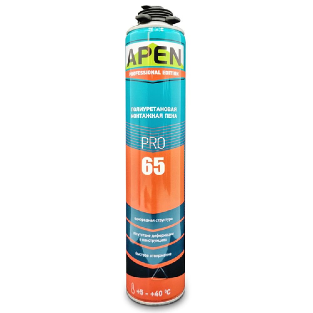 Піна монтажна професійна пістолетна Apen Gunfoam Pro 65 (Апен Ганфоам Профешнл 65), літня – монтажна піна зі збільшеним виходом (до 65 л) і низьким розширенням, ідеально підходить для монтажу та ізоляції дверних коробок і віконних рам. Робоча температура - від +5°C до +40°С, термостійкість - від -40°С до +100°С, об `єм - 875 мл