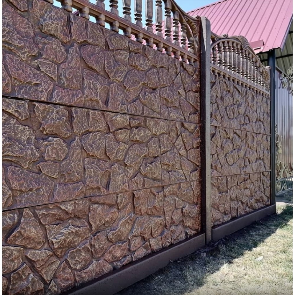 Європаркан "Бут" — це міцне та естетичне рішення для огорожі вашої ділянки. Завдяки своєму унікальному дизайну, що імітує природний камінь, він гармонійно вписується в будь-який ландшафт. Панелі розміром 2000x500 мм легко монтуються, що дозволяє швидко та надійно встановити огорожу будь-якої довжини.