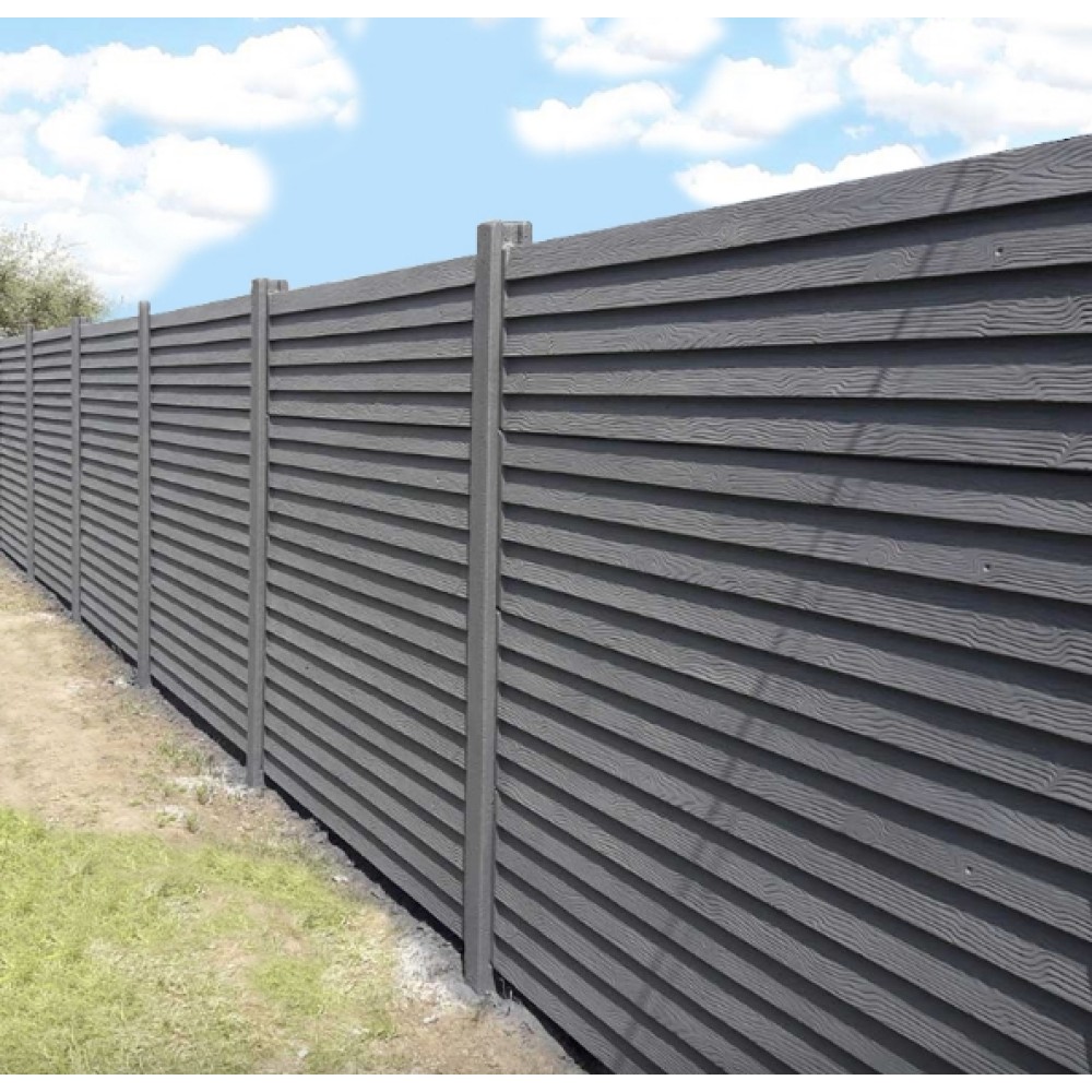 Дизайн: Плита має рельєфний візерунок, що в точності відтворює зовнішній вигляд горизонтальної обшивки з дощок, характерної для сайдингу. Головна особливість цієї моделі — двосторонній візерунок, що надає огорожі довершеного вигляду з обох боків. Чіткі горизонтальні лінії візуально розширюють простір і надають огорожі охайний, мінімалістичний вигляд. Завдяки суцільній структурі, ця модель забезпечує повну приватність.