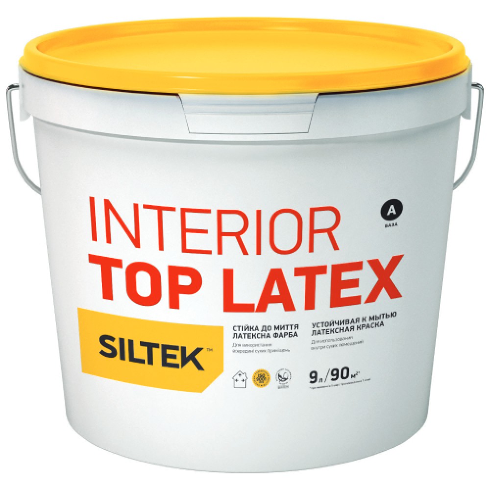 Interior Top Latex Siltek (Сілтек) - стійка до миття латексна фарба для мінеральних поверхонь (бетон, цегла, штукатурка, шпаклівка), гіпсокартону, ДВП, ДСП, шпалер, а також поверхонь, раніше пофарбованих латексною та алкідною фарбою.