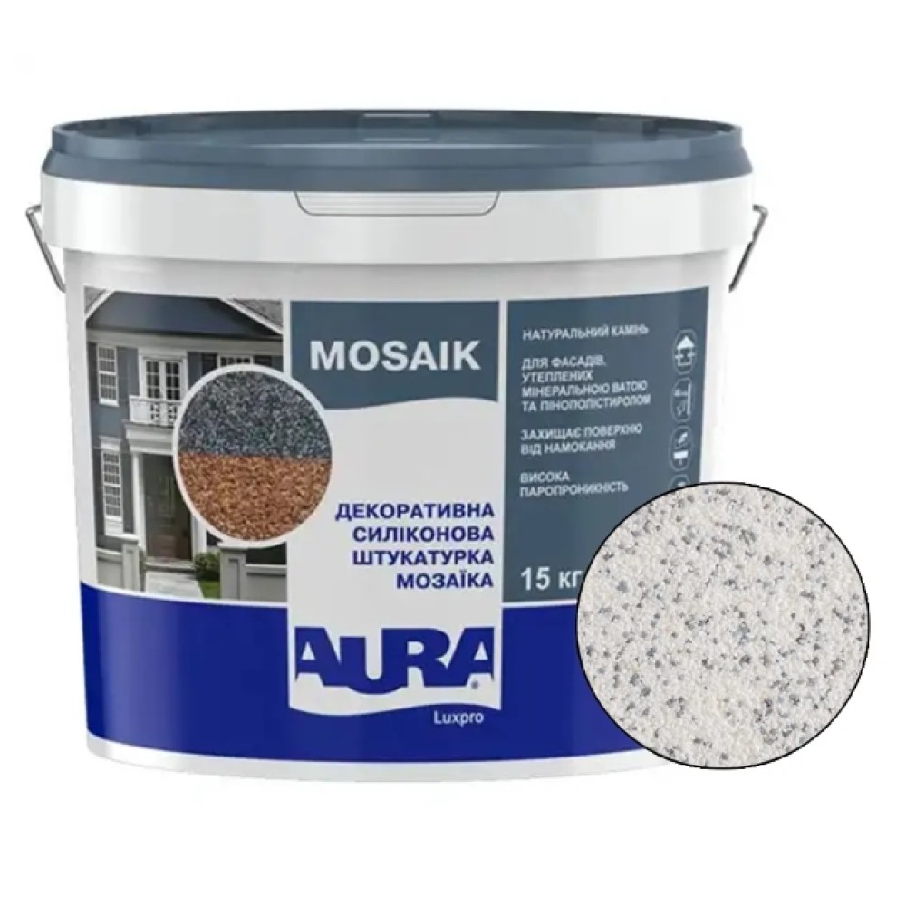 Aura Luxpro Mosaik — це готова до застосування декоративна мозаїчна штукатурка на акриловій основі, модифікована силіконом та з натуральним кам'яним наповнювачем. Вона призначена як для зовнішніх, так і для внутрішніх робіт. Завдяки своїм властивостям, вона особливо підходить для поверхонь, що піддаються високим експлуатаційним навантаженням та впливу атмосферних опадів, таких як цоколі будівель, промислові зони, а також стіни сходових маршів усередині приміщень.