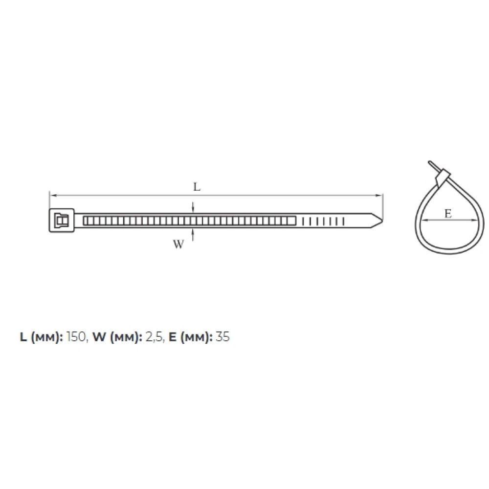 Стяжка кабельна нейлонова біла 2,5х150 мм, 100 шт
